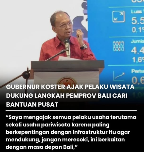 Lebih lanjut, Koster mengingatkan bahwa kemampuan fiskal daerah memiliki keterbatasan dalam membiayai proyek-proyek infrastruktur berskala besar secara mandiri melalui APBD. Tanpa intervensi dan dukungan dari APBN, upaya peningkatan kualitas layanan publik dan daya saing pariwisata Bali berpotensi mengalami stagnasi. Untuk itu, ia berharap sinergi antara pemerintah daerah, pemerintah pusat, dan pelaku industri pariwisata dapat terbangun secara konstruktif guna memastikan keberlanjutan pembangunan infrastruktur di Bali. Dukungan dari sektor pariwisata dinilai penting untuk memperkuat argumentasi bahwa investasi infrastruktur di Bali bukan semata kebutuhan regional, melainkan bagian dari kepentingan strategis nasional dalam menjaga daya tarik Indonesia sebagai destinasi wisata global.