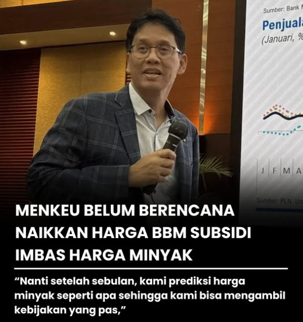 Menteri Keuangan Purbaya Yudhi Sadewa menyampaikan bahwa pemerintah hingga saat ini belum memiliki rencana untuk menaikkan harga bahan bakar minyak (BBM) bersubsidi, meskipun harga minyak dunia mengalami kenaikan akibat meningkatnya ketegangan geopolitik di kawasan Timur Tengah. Pernyataan tersebut disampaikan sebagai respons terhadap kekhawatiran masyarakat terkait potensi penyesuaian harga energi di dalam negeri seiring dinamika pasar global. Pemerintah menilai kondisi saat ini masih berada dalam batas yang dapat dikelola tanpa perlu melakukan perubahan kebijakan terhadap subsidi BBM.