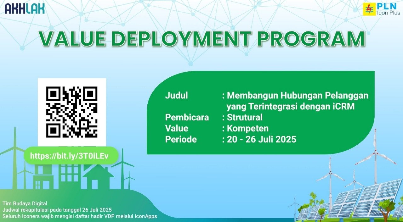 Kepemimpinan beliau yang inspiratif mendorong seluruh pegawai untuk terus berkembang, adaptif terhadap teknologi, dan mengutamakan pelayanan berbasis data. VDP ini juga mempertegas arah PLN Icon Plus sebagai perusahaan yang customer-centric dan terus berinovasi dalam membangun ekosistem layanan digital yang unggul.